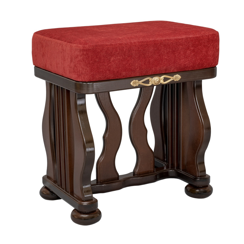 Банкетка с мягким сидением и изогнутыми опорами необычной формы выполнена из массива дерева. Сиденье обтянуто мебельной тканью высокого качества. Надежные опоры банкетки придают ей устойчивость. Банкетка станет отличным дополнением к туалетному столику «Джульетта».