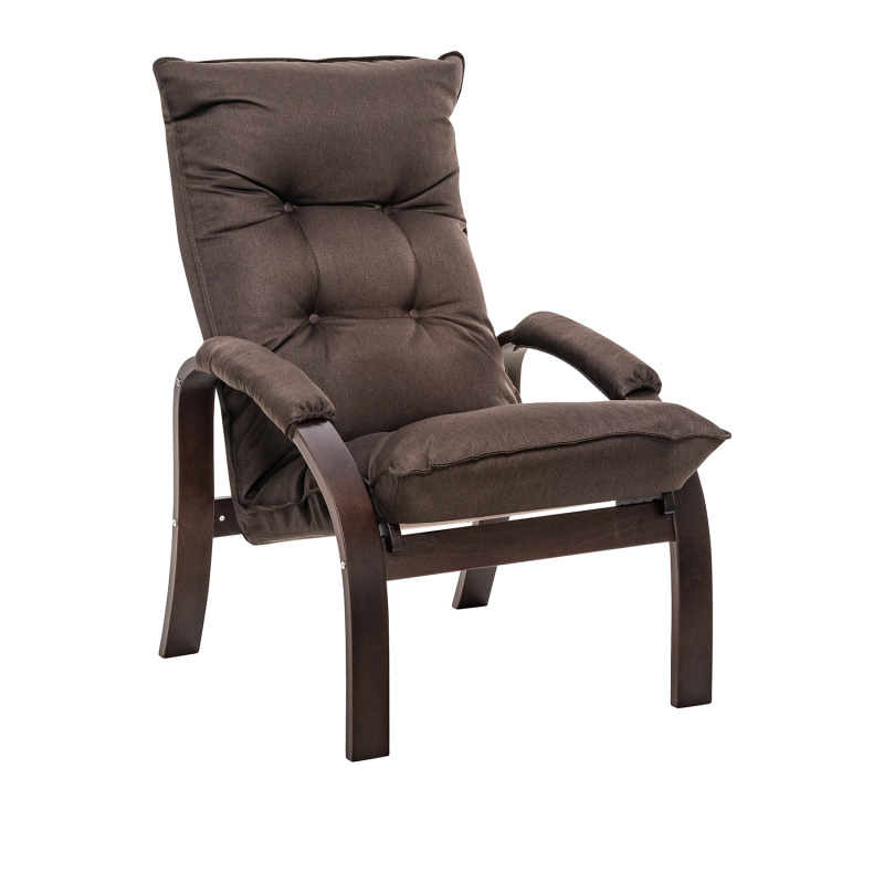 Мягкое кресло для отдыха дома и на даче Левада сделает комфортным интерьер комнаты модерн или хай-тек. Стильные кресла трансформеры из гнутоклееной коллекции мягкой мебели Leset имеют характерный силуэт, функциональны и компактны, поэтому популярны. Кресло-стул с подлокотниками и уютным сиденьем уместно в спальне, гостиной, прихожей, на балконе, в закрытой дачной беседке. У основания кресло раскладное оснащено механизмом гребенка, за счет чего одним движением спинка переключается в 4 положения. Этим модель напоминает шезлонг, но Левада Leset -полноценное интерьерное кресло для отдыха: современный дизайн, изящный деревянный каркас под итальянским лаком, велюровый чехол, наполнитель из эластичного пенополиуретана. Накладки на подлокотниках снимаются для чистки, приспинная подушка декорирована пуговицами. Эргономичное каркасное кресло раскладушка выдержит до 120 кг. Регулируемое кресло позволит расслабиться как на диване, это чудесный подарок в новую квартиру друзьям.