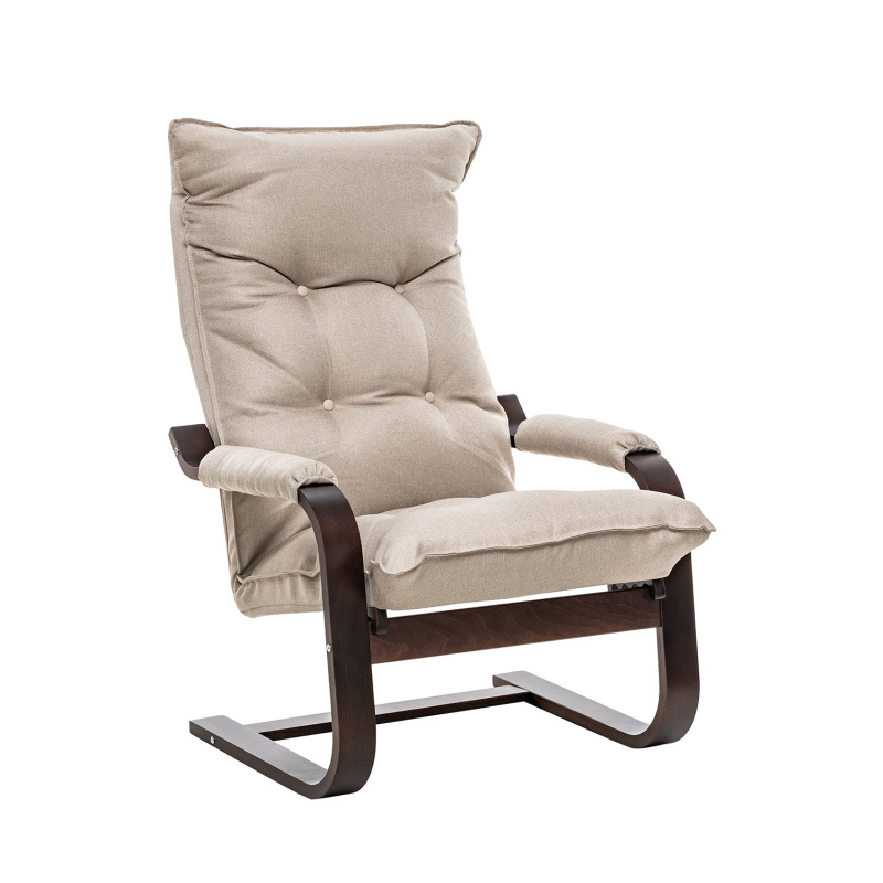 Популярное кресло-раскладушка Оливер украсит гостиную, спальню, прихожую модерн или хай-тек, и станет фишкой зоны отдыха на даче. Гнутоклееные кресла из линейки мягкой мебели Leset узнаваемы по плавным формам и высокой функциональности. Кресло раскладное можно использовать как в квартире, так и в благоустроенной беседке. Одним движением кресло трансформер переводится в 4 положения спинки. Силуэт раскладного кресла и механизм переключения напоминает шезлонг, за что кресло-стул называют раскладушкой, но качество наполнителя и обивки, премиальное исполнение основания и покрытие каркасной части итальянским лаком, глубина сиденья дарят чудесное расслабление и здоровье позвоночника. Эргономичный каркас выглядит изящно, но выдержит до 120 кг, матрас декорирован обтянутыми материалом пуговицами и боковой окантовкой, накладки на подлокотниках съемные. Трансформеры Оливер с велюровыми подушками доступны в сочетании с опорами венге, слоновая кость, орех.