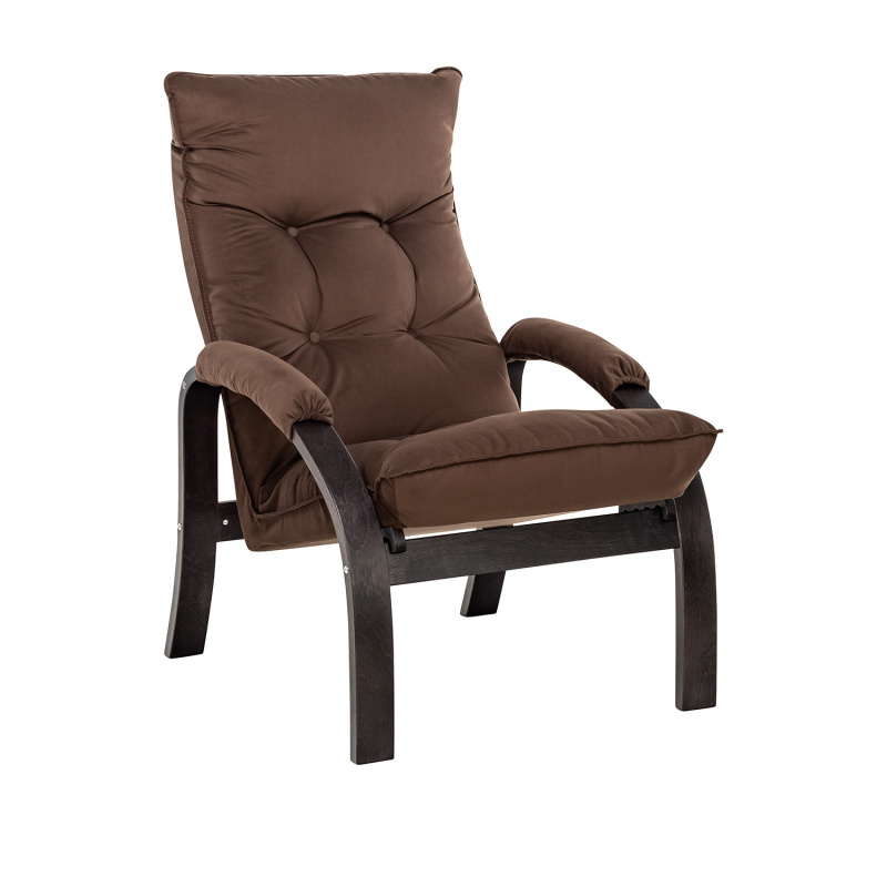 Мягкое кресло для отдыха дома и на даче Левада сделает комфортным интерьер комнаты модерн или хай-тек. Стильные кресла трансформеры из гнутоклееной коллекции мягкой мебели Leset имеют характерный силуэт, функциональны и компактны, поэтому популярны. Кресло-стул с подлокотниками и уютным сиденьем уместно в спальне, гостиной, прихожей, на балконе, в закрытой дачной беседке. У основания кресло раскладное оснащено механизмом гребенка, за счет чего одним движением спинка переключается в 4 положения. Этим модель напоминает шезлонг, но Левада Leset -полноценное интерьерное кресло для отдыха: современный дизайн, изящный деревянный каркас под итальянским лаком, велюровый чехол, наполнитель из эластичного пенополиуретана. Накладки на подлокотниках снимаются для чистки, приспинная подушка декорирована пуговицами. Эргономичное каркасное кресло раскладушка выдержит до 120 кг. Регулируемое кресло позволит расслабиться как на диване, это чудесный подарок в новую квартиру друзьям.