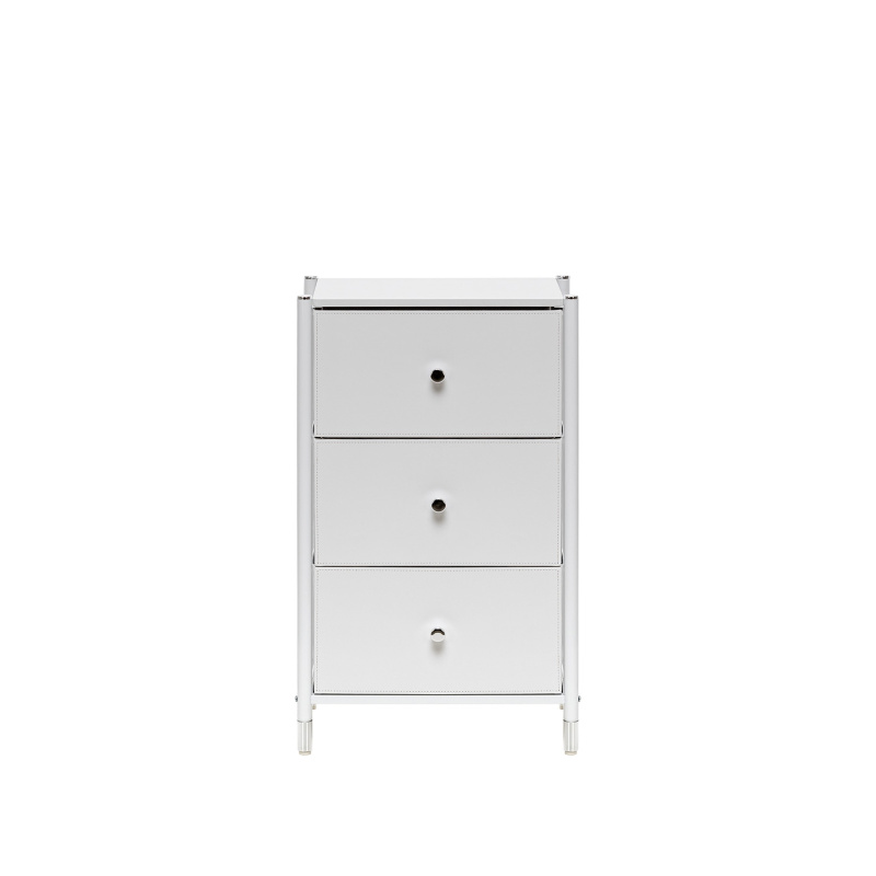 Комод выполнен в стиле модерн. Лаконичный стиль не перегружен деталями, а строгие геометричные формы «разбавлены» рисунком матовой экокожи и металлическими деталями. Торцы элементов корпуса скруглены – не ударишься и не зацепишься. А благодаря оптимальной высоте ножек, робот-пылесос беспрепятственно проедет снизу, упростив процесс уборки.