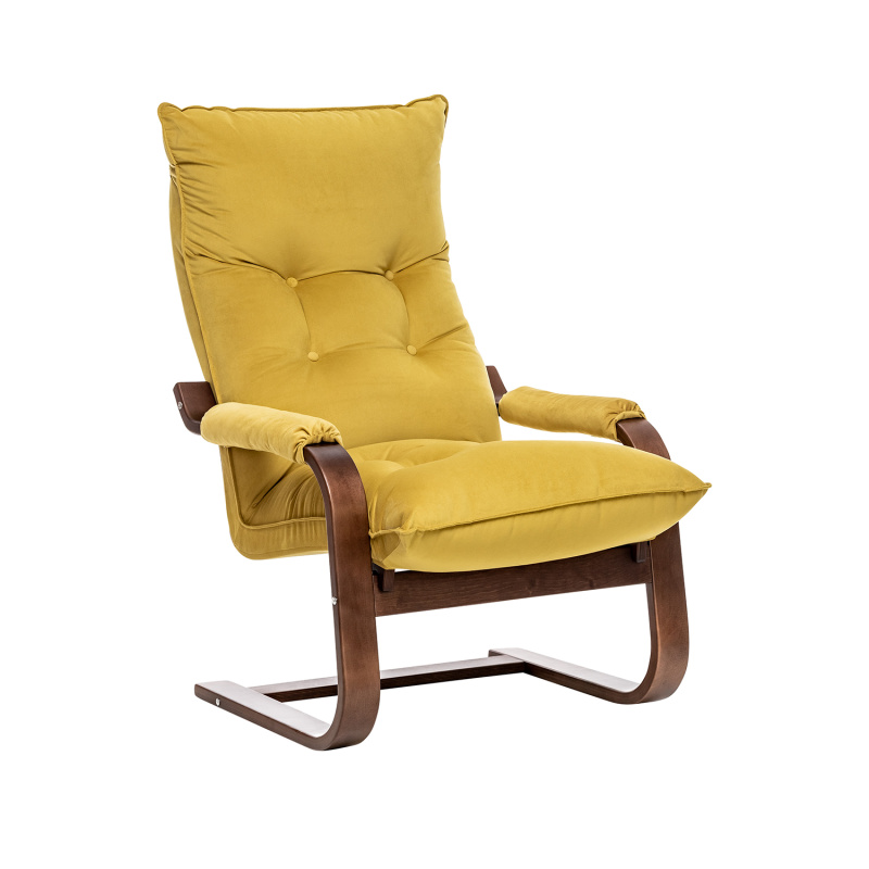Популярное кресло-раскладушка Оливер украсит гостиную, спальню, прихожую модерн или хай-тек, и станет фишкой зоны отдыха на даче. Гнутоклееные кресла из линейки мягкой мебели Leset узнаваемы по плавным формам и высокой функциональности. Кресло раскладное можно использовать как в квартире, так и в благоустроенной беседке. Одним движением кресло трансформер переводится в 4 положения спинки. Силуэт раскладного кресла и механизм переключения напоминает шезлонг, за что кресло-стул называют раскладушкой, но качество наполнителя и обивки, премиальное исполнение основания и покрытие каркасной части итальянским лаком, глубина сиденья дарят чудесное расслабление и здоровье позвоночника. Эргономичный каркас выглядит изящно, но выдержит до 120 кг, матрас декорирован обтянутыми материалом пуговицами и боковой окантовкой, накладки на подлокотниках съемные. Трансформеры Оливер с велюровыми подушками доступны в сочетании с опорами венге, слоновая кость, орех.
