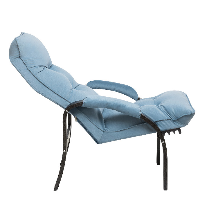 Мягкое кресло для отдыха дома и на даче Левада сделает комфортным интерьер комнаты модерн или хай-тек. Стильные кресла трансформеры из гнутоклееной коллекции мягкой мебели Leset имеют характерный силуэт, функциональны и компактны, поэтому популярны. Кресло-стул с подлокотниками и уютным сиденьем уместно в спальне, гостиной, прихожей, на балконе, в закрытой дачной беседке. У основания кресло раскладное оснащено механизмом гребенка, за счет чего одним движением спинка переключается в 4 положения. Этим модель напоминает шезлонг, но Левада Leset -полноценное интерьерное кресло для отдыха: современный дизайн, изящный деревянный каркас под итальянским лаком, велюровый чехол, наполнитель из эластичного пенополиуретана. Накладки на подлокотниках снимаются для чистки, приспинная подушка декорирована пуговицами. Эргономичное каркасное кресло раскладушка выдержит до 120 кг. Регулируемое кресло позволит расслабиться как на диване, это чудесный подарок в новую квартиру друзьям.