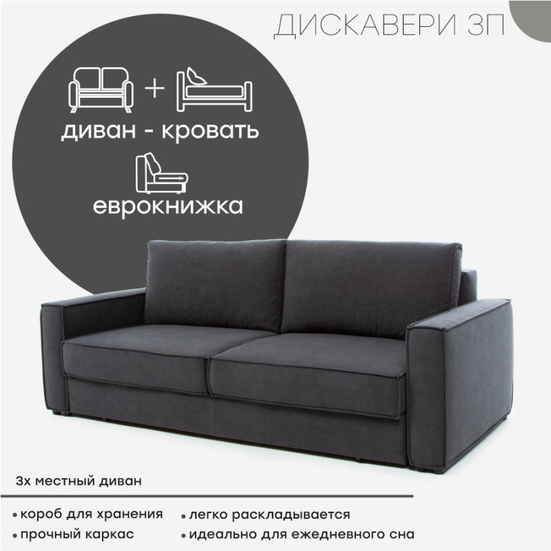 "Дискавери" - трехместный диван в стиле LOFT, стиль подчеркивается прямыми линиями и декоративным кантом, идущим по краю сидений, список и подушек. Положение "Релакс" и ортопедическое наполнение (березовые ламели + независимый пружинный блок) обеспечат комфорт посадки и сна на высоком уровне.