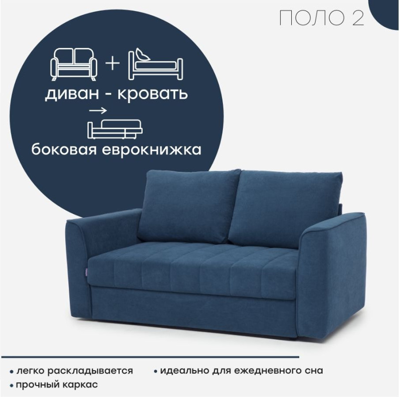 "Поло 2" - универсальный диван, который сочетает в себе комфорт, функциональность и компактность. Стильная прошивка подчеркнет уникальный и современный дизайн коллекции. Идеальный вариант как основного, так и дополнительного спального места. За счет наполнения обеспечивается правильная поддержка спины во время сна. Под посадочным местом расположено место для хранения. Максимально компактные размеры дивана как в разобранном, так и в собранном виде, позволяют дивану «Поло 1" поместиться в помещении практически любого размера.