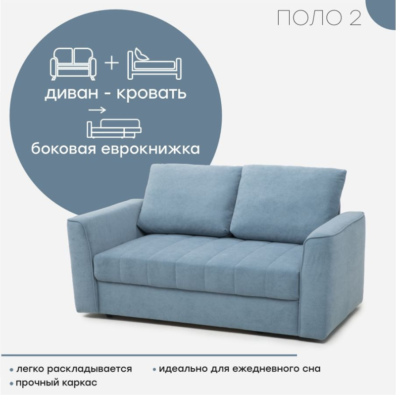 "Поло 2" - универсальный диван, который сочетает в себе комфорт, функциональность и компактность. Стильная прошивка подчеркнет уникальный и современный дизайн коллекции. Идеальный вариант как основного, так и дополнительного спального места. За счет наполнения обеспечивается правильная поддержка спины во время сна. Под посадочным местом расположено место для хранения. Максимально компактные размеры дивана как в разобранном, так и в собранном виде, позволяют дивану «Поло 1" поместиться в помещении практически любого размера.