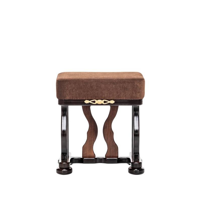 Банкетка с мягким сидением и изогнутыми опорами необычной формы выполнена из массива дерева. Сиденье обтянуто мебельной тканью высокого качества. Надежные опоры банкетки придают ей устойчивость. Банкетка станет отличным дополнением к туалетному столику «Джульетта».
