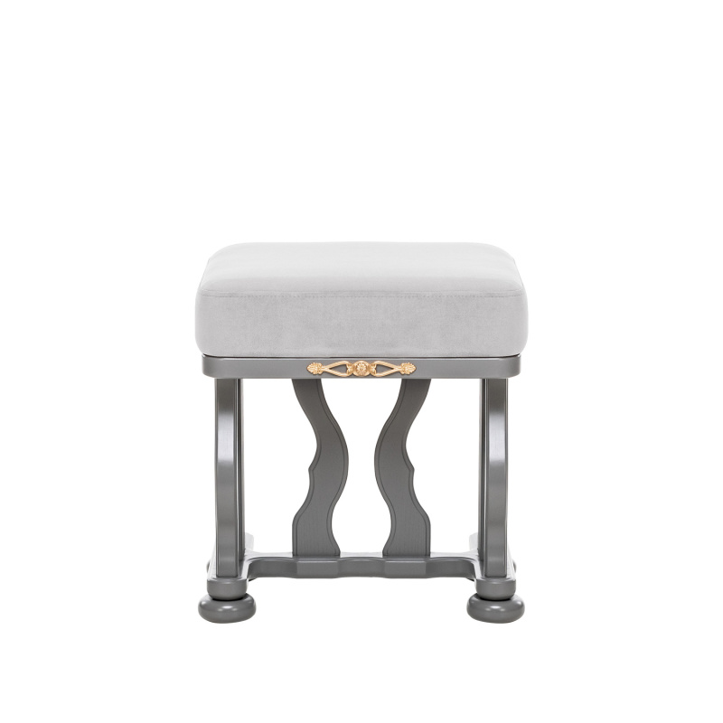 Банкетка с мягким сидением и изогнутыми опорами необычной формы выполнена из массива дерева. Сиденье обтянуто мебельной тканью высокого качества. Надежные опоры банкетки придают ей устойчивость. Банкетка станет отличным дополнением к туалетному столику «Джульетта».