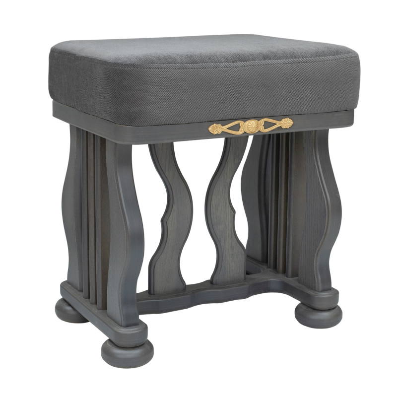 Банкетка с мягким сидением и изогнутыми опорами необычной формы выполнена из массива дерева. Сиденье обтянуто мебельной тканью высокого качества. Надежные опоры банкетки придают ей устойчивость. Банкетка станет отличным дополнением к туалетному столику «Джульетта».